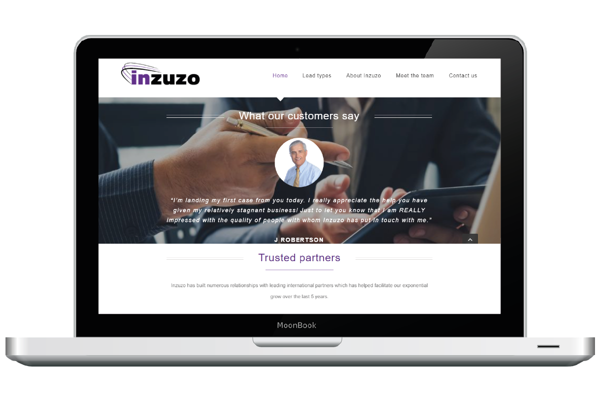 They needed a professional site that was easy to navigate so that new and existing clients could understand the lead types provided, the service Inzuzo delivers and contact the relevant account managers to ensure a winning partnership.
